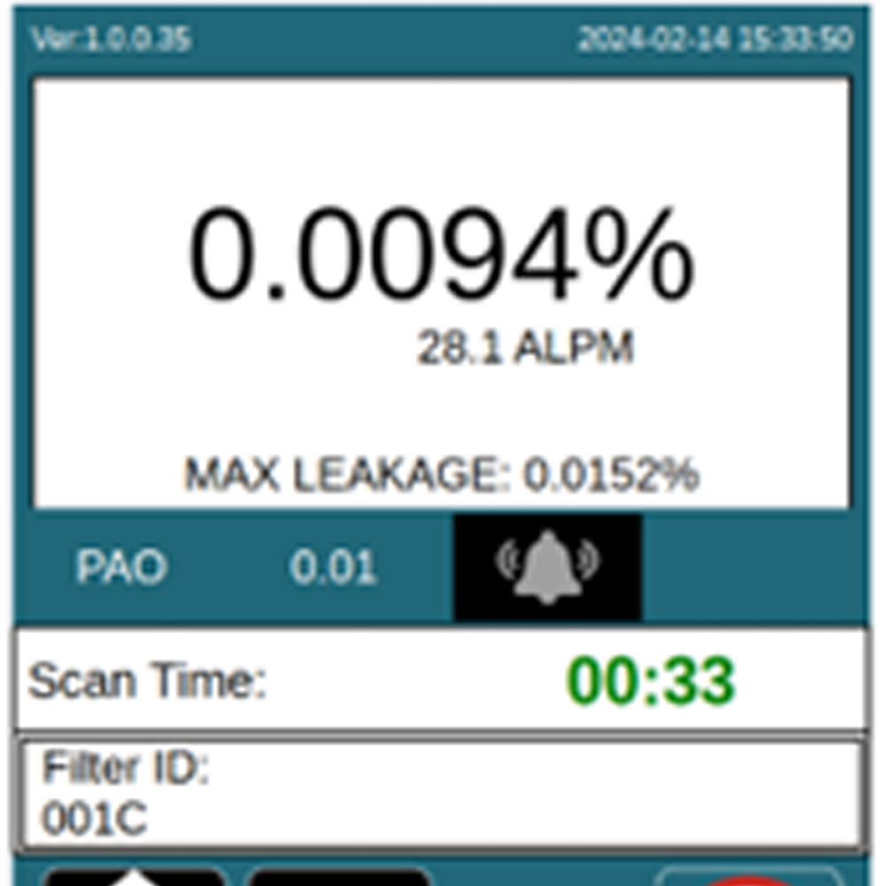 重要信息一目了然 4.3"觸摸屏上顯示重要信息,如最大泄漏率%;過濾器ID;已掃描時間。 |