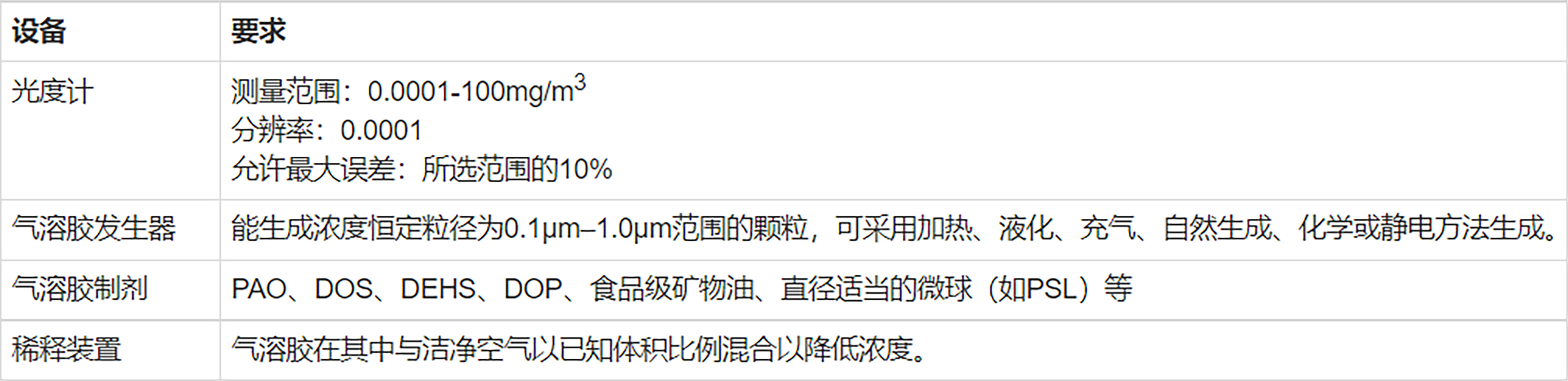 • 使用粒徑小于1μm的氣溶膠制劑發(fā)煙,使測試環(huán)境中的初始粒子濃度提高到目標潔凈度程度的10倍或100倍,記錄時間(t10n 或 t100n)