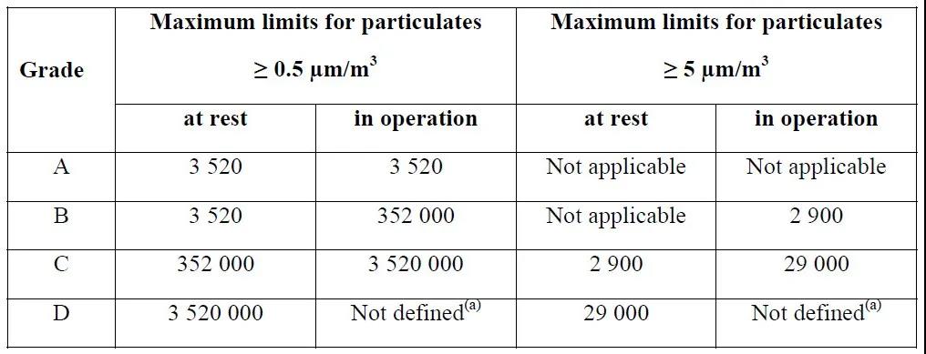 表-EU GMP Annex 1 DIS確認(rèn)中的分級(jí)限度